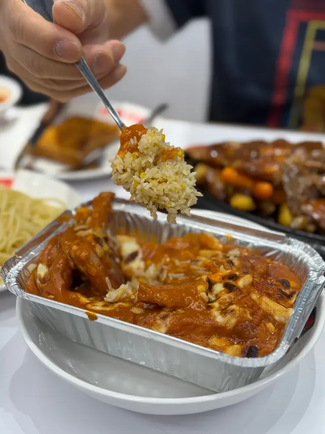 焗菠蘿豬扒中豬扒香嫩,菠蘿微甜帶酸,焗得外層微焦,香氣撲鼻。 飯軟糯配扒類剛好中和濃味。