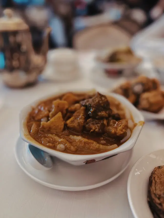 咖喱牛腩係港式大排檔嘅經典菜式,濃郁嘅咖喱汁配上軟腍嘅牛腩,滲入銀針粉(粗米粉)中,吸滿醬汁,味道濃厚又開胃。呢款菜式將大排檔嘅鑊氣同點心車嘅精緻結合,呈現出港式小食嘅獨有風味。