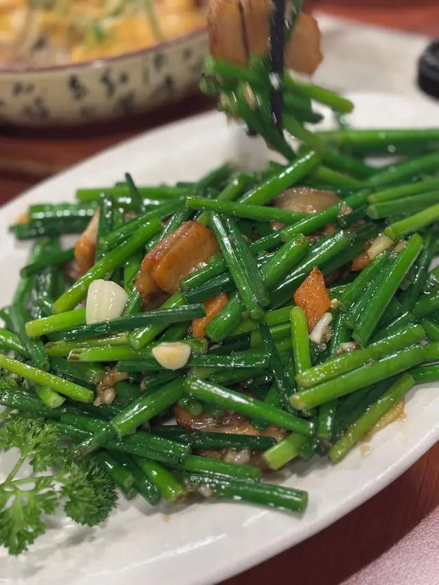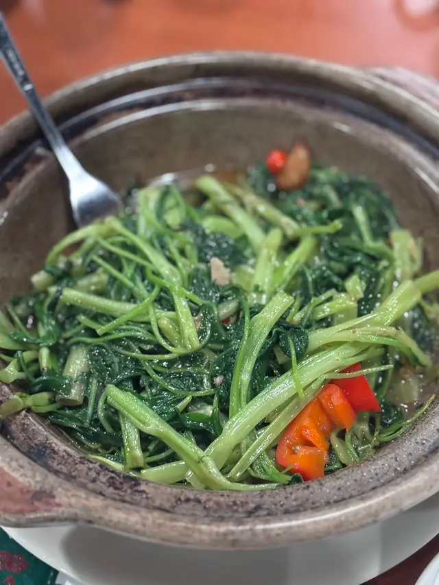 通菜炒得爽脆,蒜香突出,色澤碧綠,簡單卻清新,完美平衡其他濃味菜式。🥗