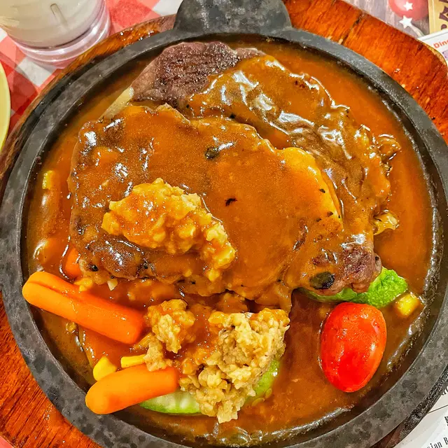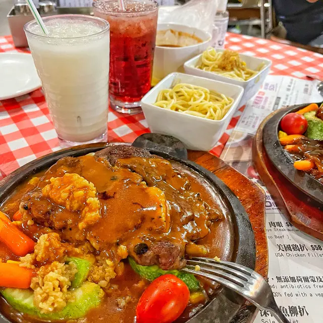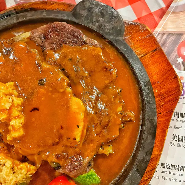雜扒餐一淋上黑椒汁就白矇矇一片