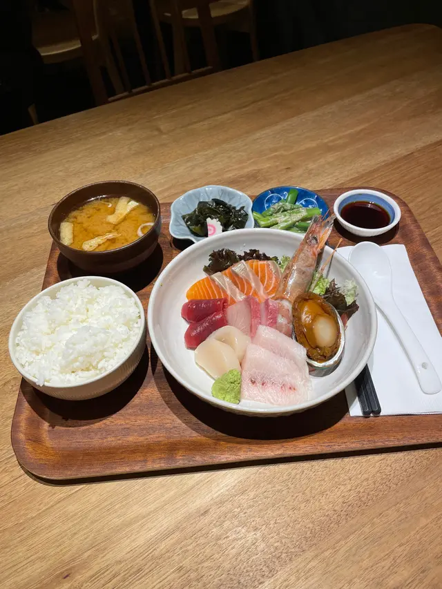 每份定食都包咗蜆肉麵豉湯、前菜兩款,熱或冷日式玉露茶。