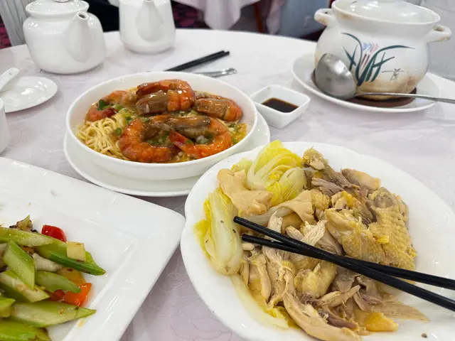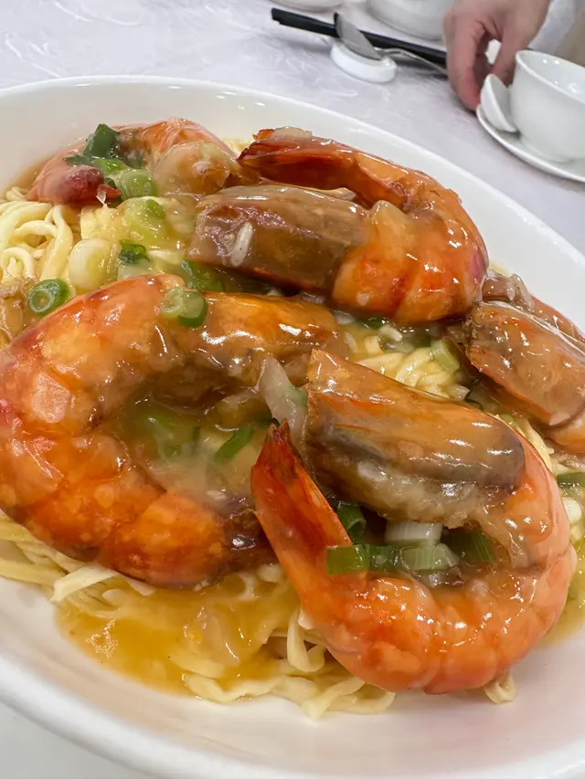 六隻虎蝦霸氣鋪陳,蝦膏滲透每條伊麵。麵條吸飽海鮮上湯精華仍保持彈牙,虎蝦肉質爽脆鮮甜,酒店級水準卻以親民價錢呈現。