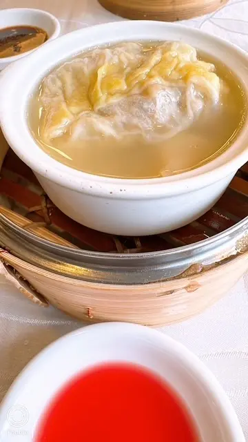 以鮮甜上湯浸住隻餃,花膠係側邊。喜歡嘅可以加少少紅醋更令人開胃,入口食到有香菇,瑤柱絲,豬肉,蝦肉及大菜糕。餃皮已被上湯浸得軟滑,食吓食吓連連湯都飲晒。