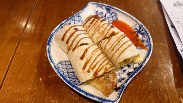 綠茶同蛋餅先後送上, 平時就算去茶記食個餐, 啲叔叔嬸嬸點都會講聲A餐喇。呢度係冇既…..