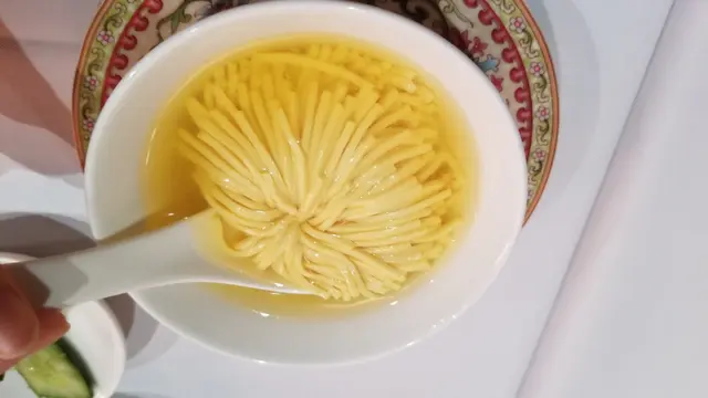 超級考刀工,切開既豆腐借助湯水既浮力,係湯碗中微微散開,加上湯水帶黃的色調,真係好似一朵菊花