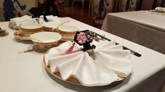 而且餐廳裝備都好雍容華貴,帶有中國風,餐筷已經很美了,我媽係開餐前已拍下巨量照片