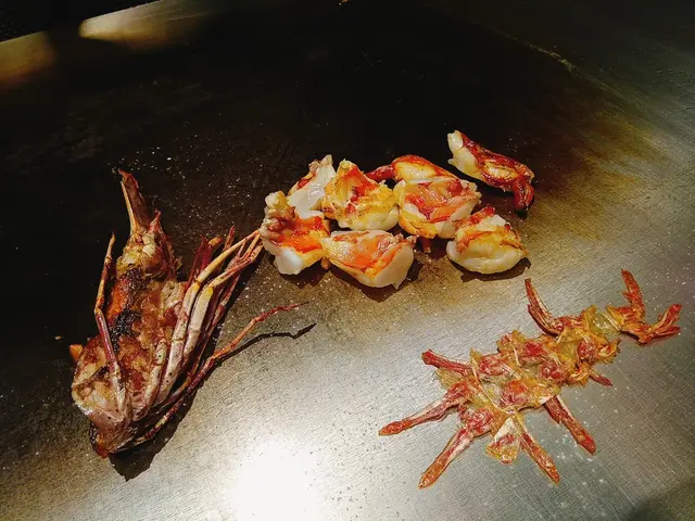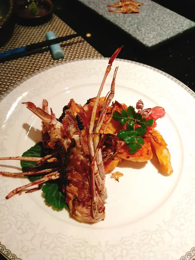 來自馬來西亞既巨型竹蝦 未煮嘅時候足足有我一隻前臂咁長 勁誇張 師傅用蝦頭膏去做咗個醬汁 蝦肉都好巨型啖啖肉 而且非常鮮甜彈牙 最後上面加上矜貴 嘅黑魚子 鮮甜鹹香得黎不失氣派