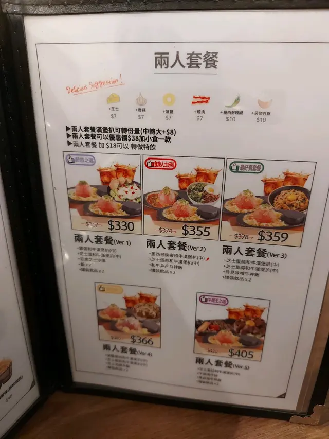°漢堡扒份量可加$8中轉大