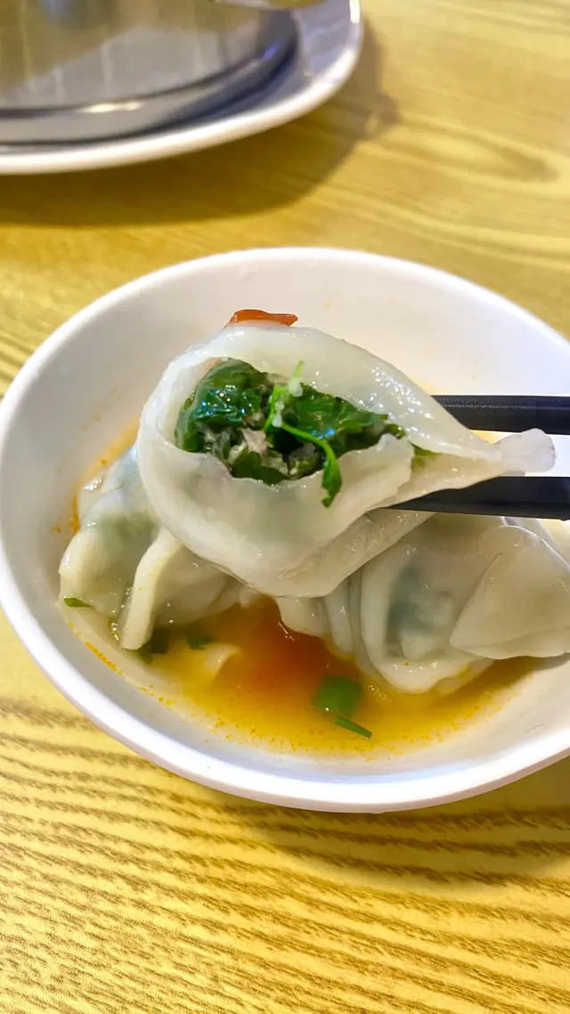 朋友就選咗清甜嘅三鮮蕃茄湯底,芫茜份量適中與豬肉既甜味互相配合,鮮甜中有著淡淡嘅芫茜清香。