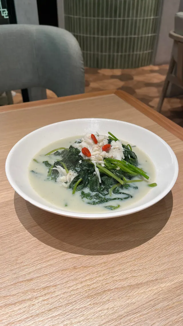 鮮甜蟹肉加上香滑豆漿,蕃薯苗翠綠又嫩。