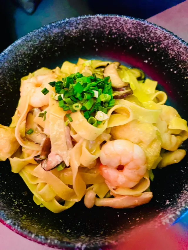 這個闊條麵椰香味濃 ,很creamy , 真有一點星洲的味道,蝦爽口彈牙,配合喇沙的配料豆卜吸收醬汁 ,別有一番風味