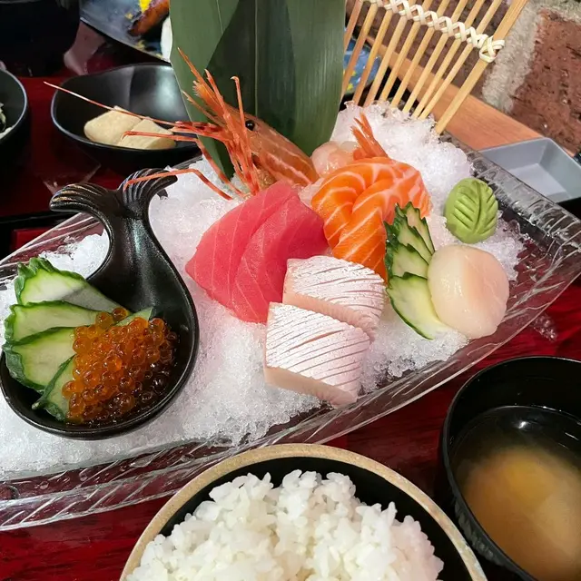 賣相都幾靚 用小小刺身船方式上枱⛵刺身份量都幾多 有牡丹蝦/三文魚籽/帶子/吞拿魚/油甘魚同三文魚🐟除咗牡丹蝦之外 每樣都有兩件 個人特別鐘意牡丹蝦 新鮮彈牙 同埋吞拿魚油香味濃郁 所有刺身都係厚切 最重要係夠冰凍🧊