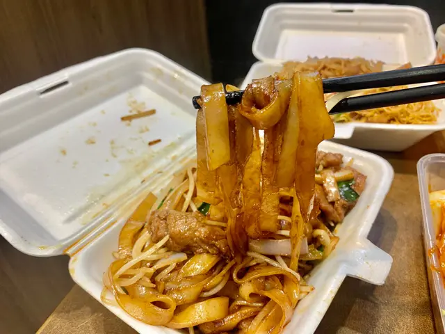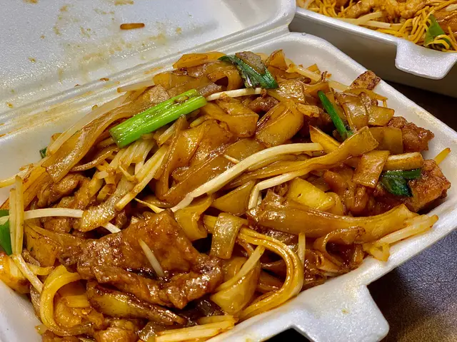 比想像中的超大碗,完全是塞滿整個外賣盒,牛河炒得乾爽又香濃,不會黏口😗當中配料就有洋葱、芽菜,牛肉.牛肉軟稔,炒完也不會變韌.