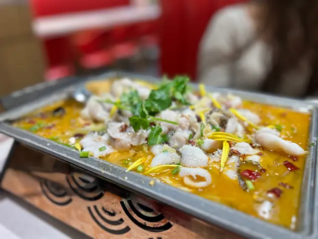 金湯酸菜魚,湯底的顏色很吸引,味道也不錯。魚肉鮮嫩,份量唔少,配上酸菜,味道挺開胃的,不會太膩。 裏面有一啲薯粉,非常索湯。