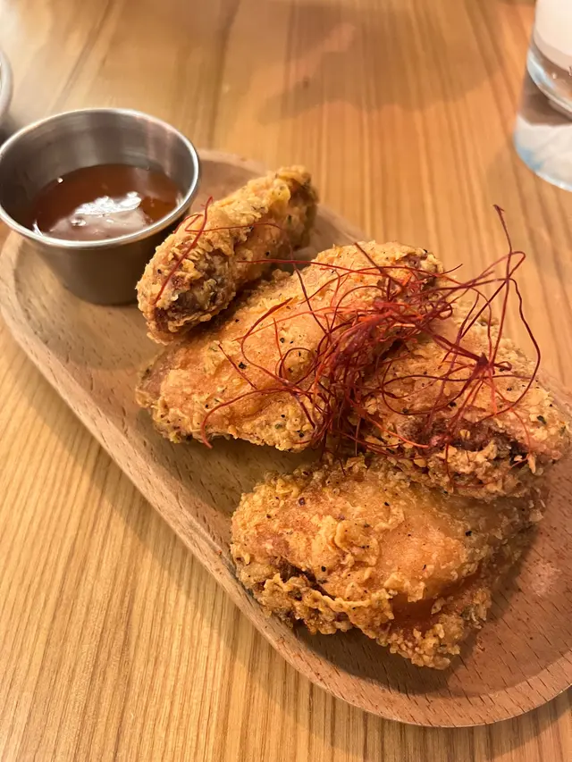外皮炸得金黃酥脆,肉質鮮嫩多汁,搭配酸辣嘅水牛醬,超級夾!😽