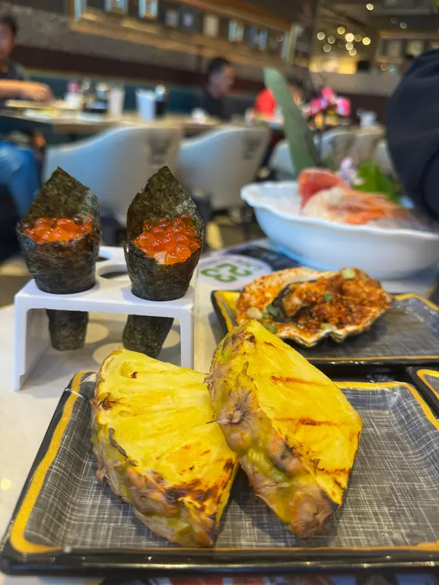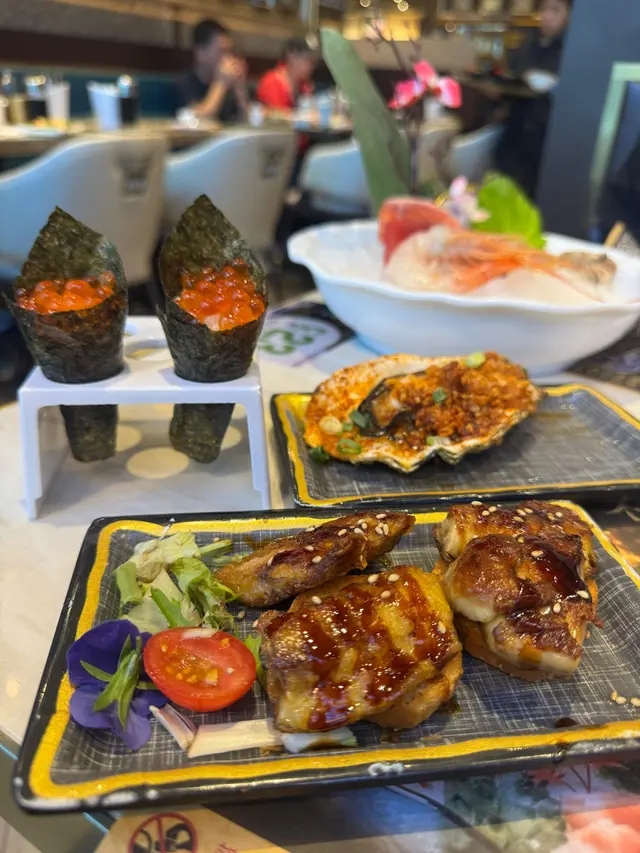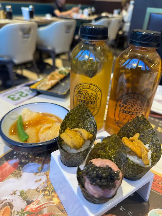 🍣刺身區簡直係海鮮控天堂!藍鰭吞拿魚油脂分布均勻,厚切入口油脂香超濃;三文魚、油甘魚同樣厚切鮮甜,油脂豐富;仲有甜蝦、赤蝦、北海道鮮帶子,個個新鮮度爆燈,鮮甜彈牙,食幾碟就回本!壽司同手卷都有驚喜,芝士鰻魚玉子燒、海膽手卷,每款都好出色~👍🏼