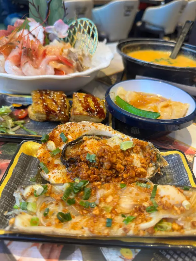 🍲熱食區一樣精彩!近期先有嘅蟶子王係必食回本之選,夠哂鮮甜彈牙;川燒珍寶蠔肥美多汁,鐵板鵝肝多士極邪惡;仲有金湯燴花膠、紅燒蟹腳花膠翅,矜貴食材任食;當然唔少得炸物串燒,牛舌、芝麻雞翼同樣惹味,每款食完都想encore~😋