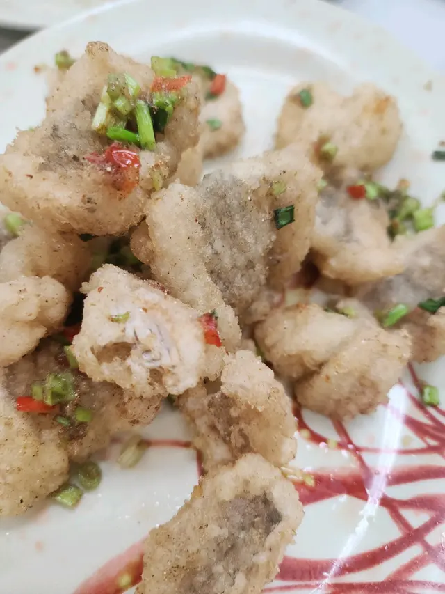 今日朋友介紹咗嚟呢間上環街市熟食中心嘅潮州打冷小菜,本來都冇諗住寫食評,但係好想讚下佢哋好食夾大件, 我哋點咗椒鹽鮮魷,秒殺咗冇影到相, 通菜炒牛肉食咗一半先至記得影相,夠鑊氣多牛肉通菜青綠好食, 潮州餸好似叫做水瓜烙,第一次食朋友點嘅,幾得意, 有啲似煎蠔餅但係中間係水瓜,脆脆地煙煙韌韌啲水瓜又爆汁,潮州菜梗係唔少得薄殼啦,唔好意思又係食到尾聲先至記得影相,個汁好香加埋啲九層塔真係食到停唔到口,鮮甜到不得了,鹵水鵝啲鵝真係夠入味,鵝又真係又嫩又滑,椒鹽九肚魚,我平時真係好怕食九肚魚因為其實好多骨要𦧲返出嚟,但係呢度佢竟然將九肚魚拆骨,你可以一淡食落去,脆卜卜又有椒鹽味,又係食到一半先醒起影相,今次真係抵讚,有水準價錢實惠嘅潮州小菜!