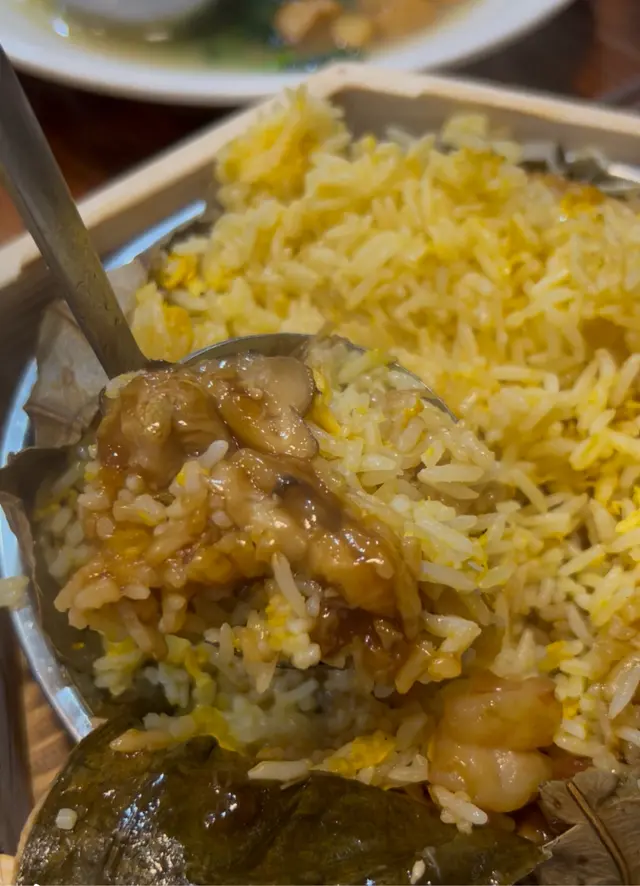 好物沉歸底,餡料收收埋埋喺底,有菇粒,蝦粒,肉粒,飯有淡淡荷葉清香配搭鮑汁,味道岩岩好