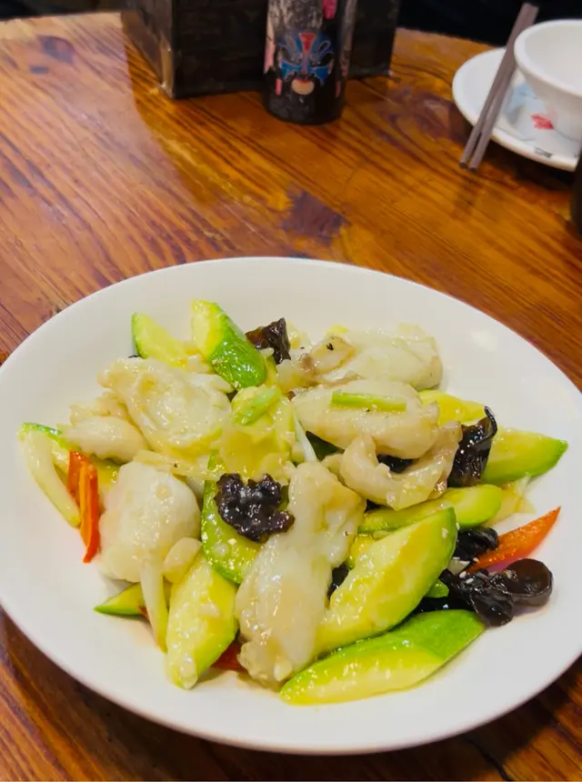 斑球大大片連住魚皮有滿滿骨膠原,翠玉瓜同雲耳炒到岩岩好,口感清爽