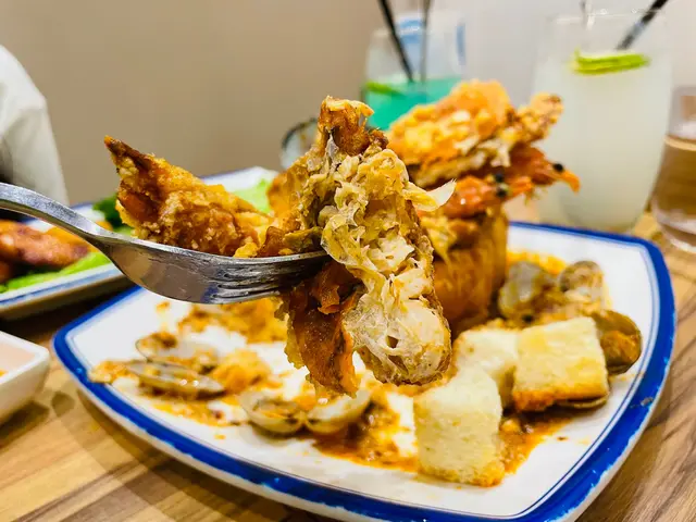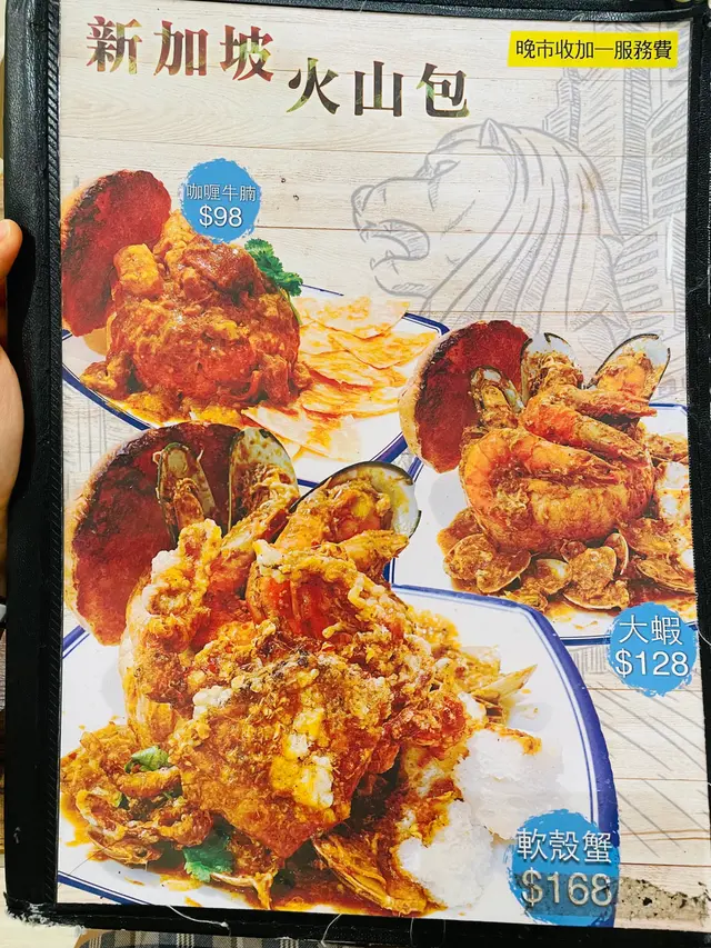 火山包包括有軟殼蟹🦀、蝦🦐、青口、蜆、麵包粒🙊