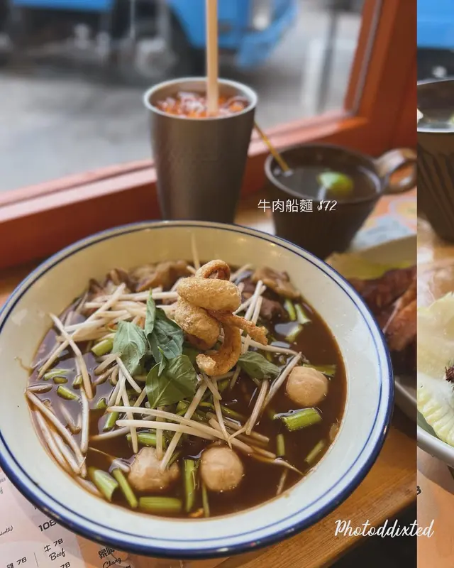 😋招牌船麵無可能唔試 湯底好濃 好重金不換嘅香料味 再聽店家話將枱面4款調味料:魚露 白糖 白醋同辣椒粉撈入去 令嗰湯底更出💕最尾餘韻帶點甜味 配金邊粉一流 伴碟嘅牛肉就普通 唔太嫩 但湯底很好 如果肉質改善會更好食 另外點牛肉但配豬肉丸又係令我有點不解