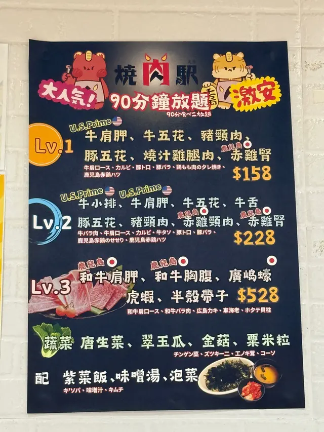 抵食燒肉放題 like777等級22025-12-02 關注 星期五收工在旺角搵食,經過呢間在旺角花園街附近的燒肉,被門口的價錢牌吸引咗。開始以為是燒肉定食,估唔到傝地仲有供應燒肉放題。$158 限時90分鐘,雖然肉類只有幾款選擇,但質素都唔差,有牛味,也不會太多肥肉,呢個價錢我已經收晒貨。放題除了肉類,還可以點翠肉瓜、金菇、粟米和生菜。嫌燒肉太油膩,可以用生菜夾著一起吃,也有幾款醬汁可以拌著吃。另外,加$18可以有汽水放題,入面單買一罐也需$12。座位以bar枱為主,也有兩三張卡座,環境舒適,也不會太熱。以上食評乃用戶個人意見 , 並不代表OpenRice之觀點。讚好分享抵食燒肉放題 燒肉駅 一人燒肉·丼飯 https://s.openrice.com/QrbT0lsvV00檢舉 張貼 評分4味道5環境5服務4衛生5抵食用餐日期2025-11-28用餐途徑堂食人均消費$185 (晚餐)