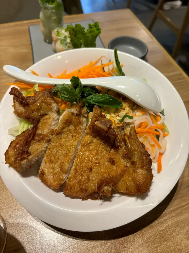 香茅豬扒撈檬絕對係一個開胃嘅菜式,檬粉彈牙爽口,配埋香茅豬扒,兩者完美結合。豬扒烤得外焦內嫩,香茅嘅味道滲入肉入面,仲有酸酸甜甜嘅魚露醬汁提升味道層次!🍖