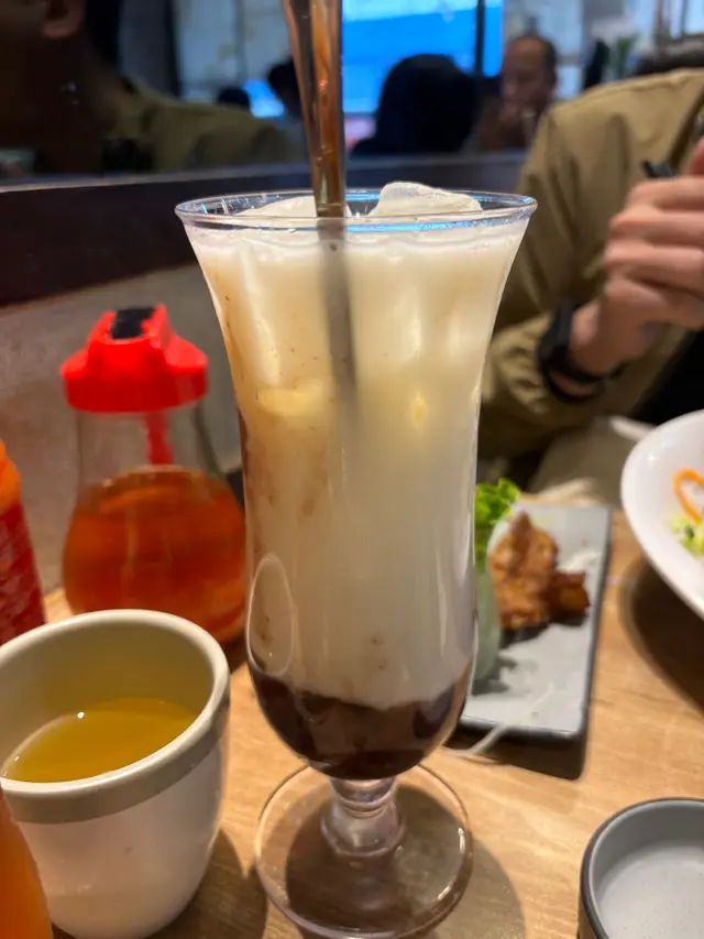 朋友點左椰汁紅豆水係甜品同飲品嘅完美結合,椰香濃郁,紅豆煮得軟糯,甜度啱啱好,唔會太濃太膩。🥥