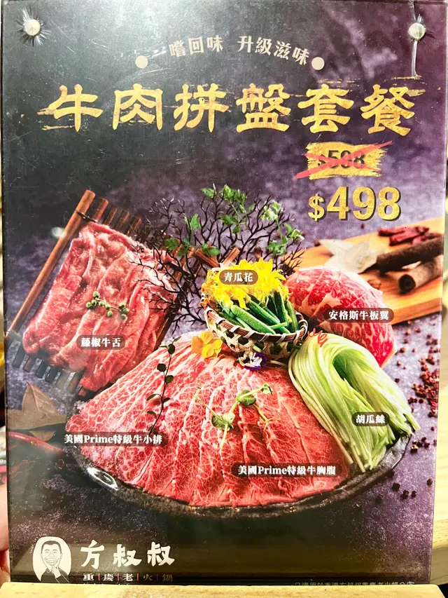 推廣的一款牛肉拼盤,包括藤椒牛舌、美國Prime特級牛小排、美國Prime特級牛胸腹及安格斯牛板翼四種牛肉,份量足夠,肉質都比想像中高,特別要讚藤椒牛舌,即使沸多一點仍然非常軟滑,令人眼前一樣。拼盤同時配有胡瓜絲及青瓜花兩款較特別及少見的蔬菜,其中青瓜花口感獨特,沾上麻辣鍋很有趣🥰