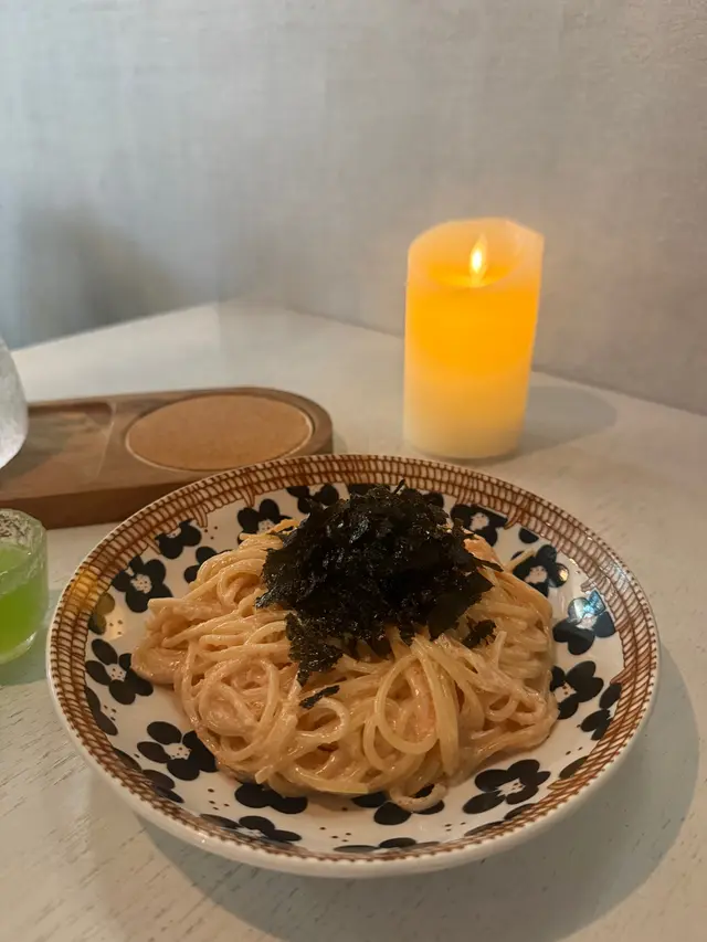 「明太子意粉」沒有失望,明太子的鮮香與意粉的彈性完美結合,是一道不容錯過的主菜。配上一點海苔,層次和色香味更加提升。