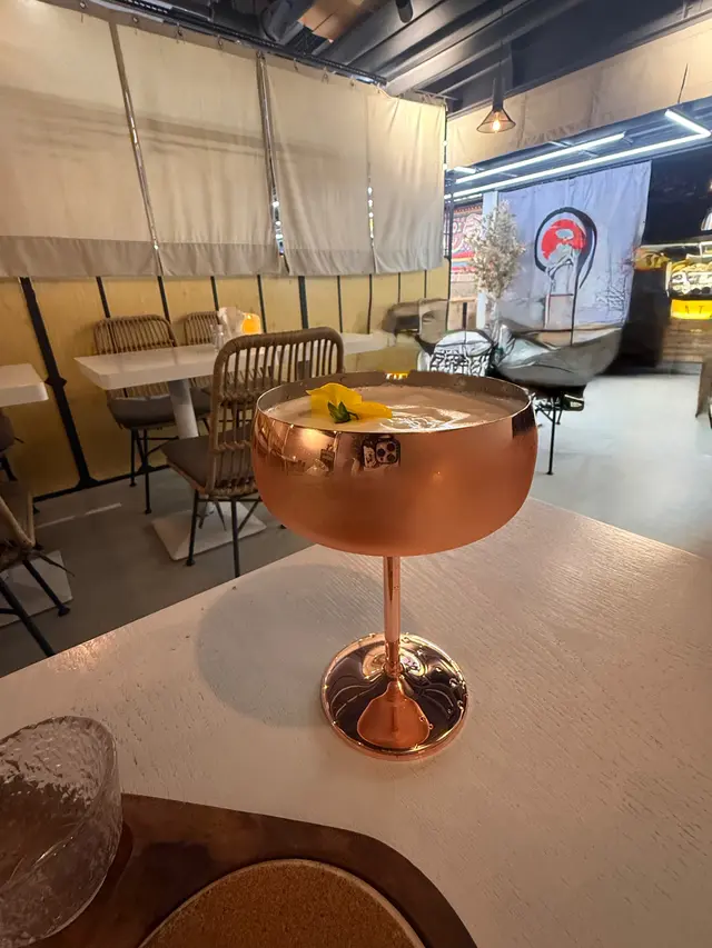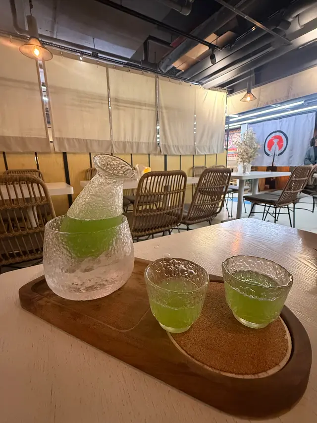 串燒配Cocktail 配合寫意的環境,餐牌有成十種不同顏色的雞尾酒,綠色Cocktail帶有薄荷味,容易入口。