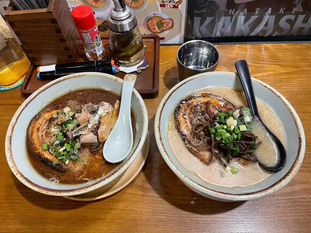 我地今次叫左魚介湯底及豚骨湯底🍜