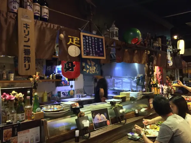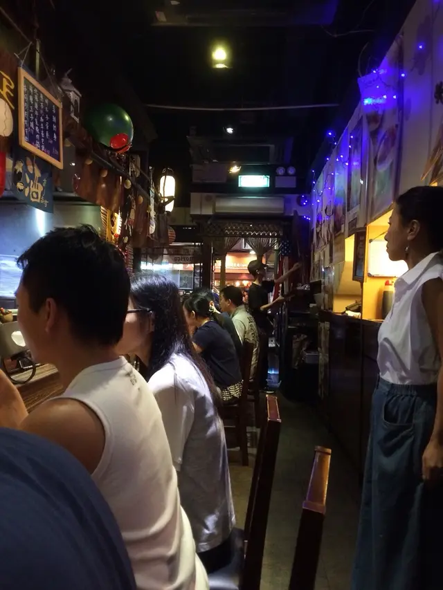 走進店內,發現店舖的陳設裝潢滿有日本風的,有點像是居酒屋的味道。首先店內的右方是一處空間較大的位置,放置了好幾張四人枱,而左邊直入就是我和朋友所坐的吧枱位置,我認為是全店最美最富日本風的地方。吧枱上置有很多精美的日本小擺設,上面的一列日本酒瓶和寫有日文的啤酒廣告木牌和帆布,可說是整個焦點所在。