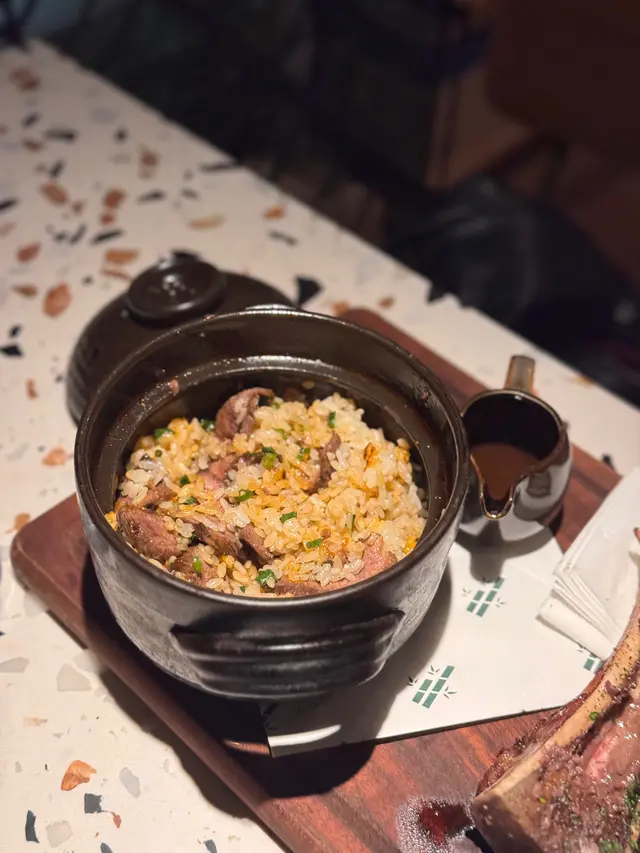 新鮮出爐既煲仔飯 店員會加入牛骨髓同醬汁