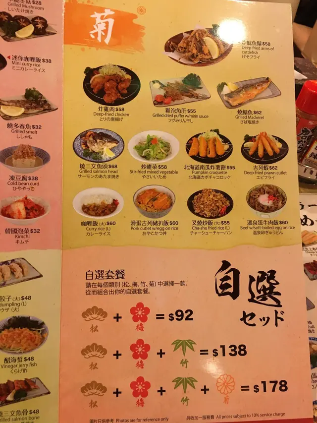 這裡的餐牌以松竹梅菊四花分別菜單,可以自選搭配。於自選套餐可以看到松餐牌搭配梅餐牌的便是$92了。而我最想介紹的是以下這個套餐。