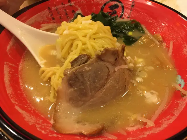 我的是元拉麵,大大片的日式叉燒在面上,味噌湯底,配料有海帶、蔥、荀、芽菜等等。
