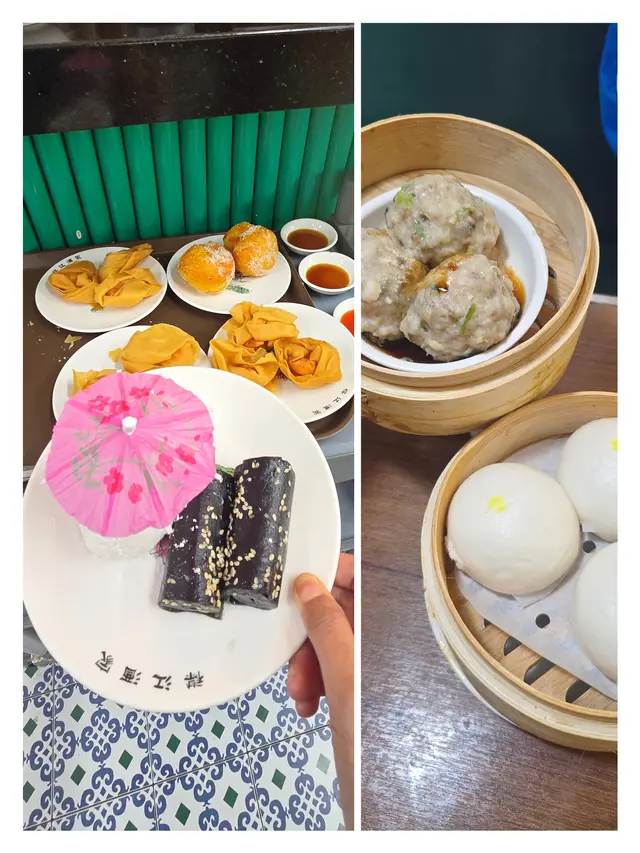 我推介的點心是香煎芋頭糕、富貴金錢肚、豉汁鳳爪、芝蔴卷、煎腸粉、奶黃包,點心味道剛剛好,真材實料,果然係手工製的點心,亦好符合港人嘅口味,好值得推介,我好開心可坐到大卡位,亦想不到我爸爸會點好傳統的芝蔴卷🤣😂。