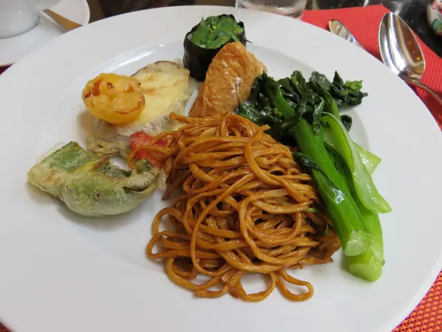 純素的食物包括燙青菜、炒伊麵、蔬菜天婦羅、中華壽司和腐皮壽司。