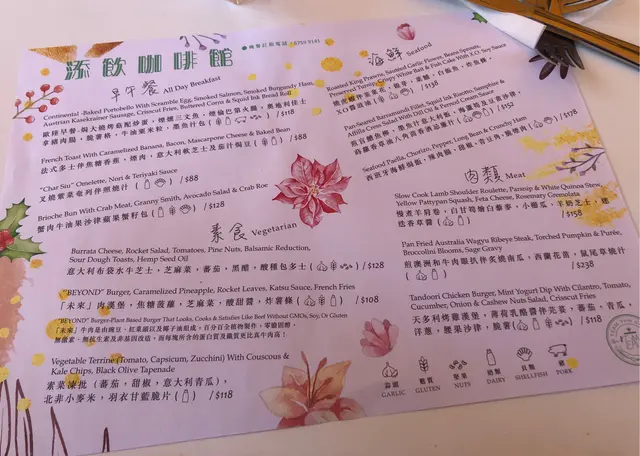 📌餐牌就係餐紙,所有食物印咗上去餐紙度。大路Cafe有嘅all day breakfast 呀,漢堡包呀,沙律啊,肉食啊都有,價錢由$88至$238再加一,只有散叫,冇套餐價,食物同飲品都要分開嗌,價錢就偏貴咗啲。🔝