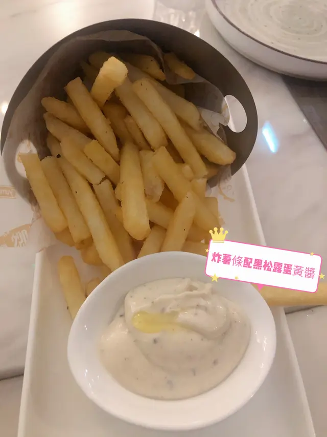 薯條炸得好香脆即叫即炸,條條都脆卜卜,黑松露蛋黃醬有濃濃嘅黑松露味,正
