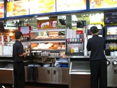店內員工走動的位置相當寬敞~至少感覺又安全又衛生~~單看發泡膠外盒的賣相就覺得不太是味兒~沒有一絲包裝分可言~~吃才是正題~~~小比三塊hotcake比常吃到的為鬆厚~熱力平均也就氣孔的分佈平均~~當然吃hotcake少不了主角syrup~burger king的syrup稠度非常~~highly concentrated~而且甜度與hotcake匹配~~價錢不比隨街吃到又經常加價的麥字記貴~但論味道必試一籌