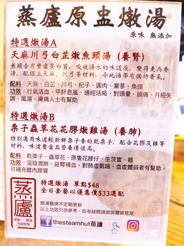 精選燉湯B 栗子蟲草花花膠燉雞湯 $48