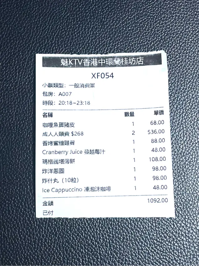 周一至四黃金時段18:00-02:00三小時K歌及一杯無酒精飲料成人人頭費(兩人$536),小包房房型有三面LED大屏幕,唱歌時無須擔心視線會被阻擋,而要左閃右縮,但又跟不到字幕,唱歌時猶如在開個人演唱會!客人只須利用透過掃描屏幕上的QR code,進入智能系統控制台,一機在手,便可隨心所欲地點歌、點餐、控制音量、切歌、調節幻彩LED 氣氛燈光及音響設備效果、製造舞台彈幕應援效果、調教冷氣風速等等。歌單齊全,中、港、台、日、韓、歐美等等歌曲應有盡有,當然包括經典老歌,以至最新流行金曲。房內配置JBL專業音響設備,音響超出色。麥克風音質清晰、高質,最欣賞的是放低麥克風不用後,麥克風會自動設為靜音,不會收音,非常專業。另外,麥克風AI 智能收音可以選擇《天王》及《歌神》的咪聲,亦可以選擇墊音或不墊音,最後更設有Al評分系統,從音準、節奏、感情三大準則評分,再得出綜合唱功評級,等大家勇闖SSS級挑戰,夠曬過癮!