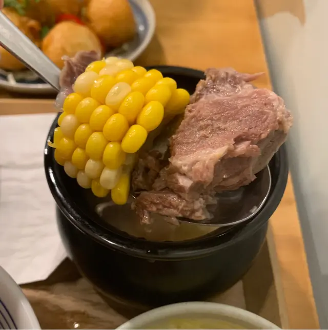 👉原盅燉湯: 燉湯是粟米排骨湯,味道清甜,很有家常便飯的湯水味道。