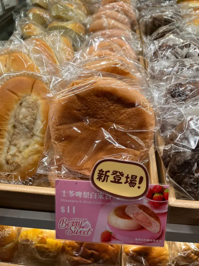 呢個新出嘅白朱古力士多啤梨麵包完全唔掂,佢個包皮雖然粉紅色但係應該係悉數,食落去完全冇乜朱古力或者士多啤梨嘅味道,入面醬更差。。。首先冇幅相嘅含量咁多咁靚,只有好扁好扁好少嘅dddddd,我唔記得影相, 而且仲要一啲都唔香,我自己查花生醬煉奶仲好味