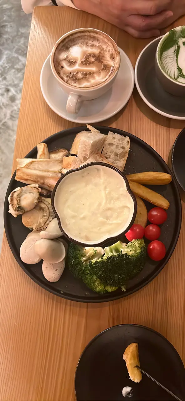 新出㗎,所以就試吓,拼盤內薯角,酸種麵包,帆立貝,牛仔腸,西蘭花,車厘茄,迷你雞髀菇。除咗一嚟到嘅時候芝士未夠熱同個火比較細之外都好好食