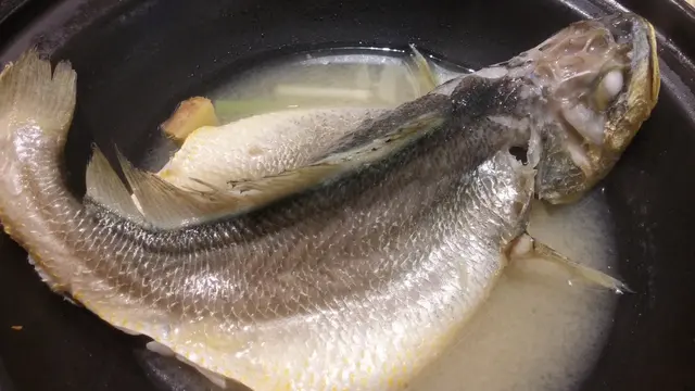<原味燜黃花魚$68> 把黃花魚開邊再用薑片蒸熟後放回砂鍋熱騰騰地呈上。魚的鮮味得以完全保留,肉質嫩滑。