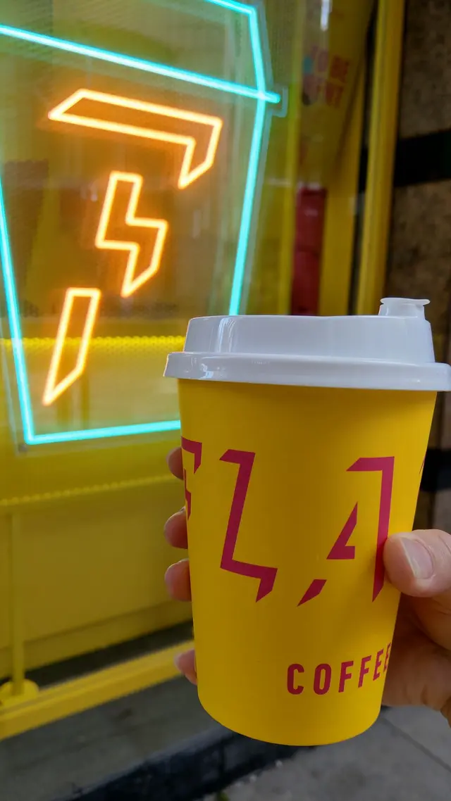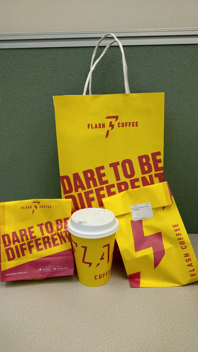 Flash Coffee 以紅色閃電圖案作為 Logo,拼砌而成店名 Flash Coffee 的 F 字母!