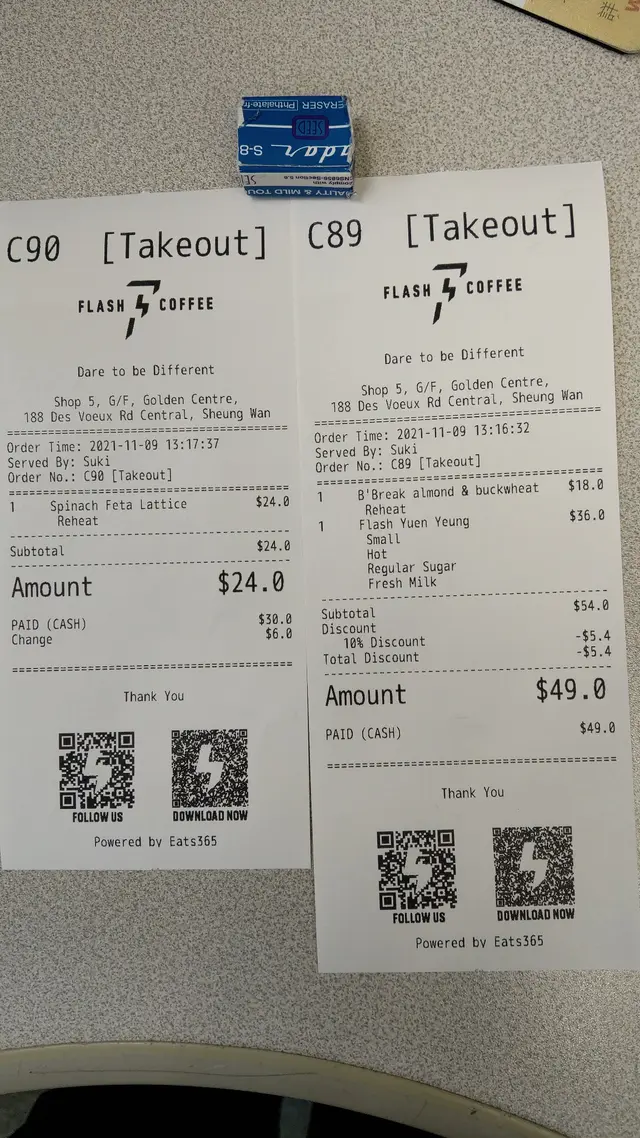 相對 Flash Coffee 的飲品及食品價位比較連鎖咖啡店更合理!